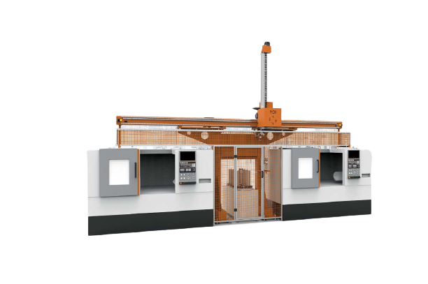 CJB 系列桁架機器人屬于外置式一拖二的布局方式。它可以完成兩臺機床的自動上下料,特別適合加工節(jié)拍短、生產(chǎn)批量大、一序或者兩序加工的產(chǎn)品。